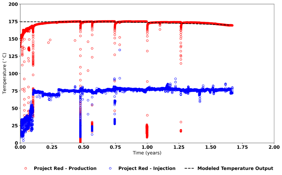 The baseline empirical production data for this evaluation was derived from Figure 5 of Fervo Energy’s report, Enhanced Geothermal Has Been Proven at Scale: Here’s What Two Years of Production Data Show (Fervo Energy, 2026).