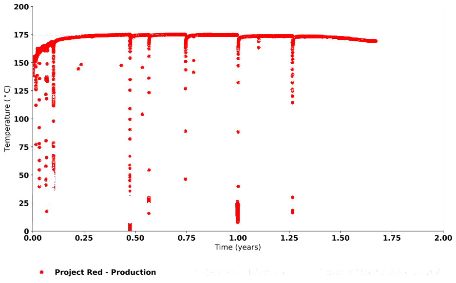 Overview: This analysis[1] evaluates the accuracy of the analytical GEOPHIRES Gringarten reservoir model by comparing it against real-world EGS empirical data from the Fervo Energy Project Red site released in April 2026. For comparative context, it also includes the predictive temperature curve generated by Fervo’s proprietary modeling. The results suggest that the GEOPHIRES implementation of the Gringarten model serves as an effective, accessible tool for EGS techno-economic modeling, providing a rapid, computationally efficient complement to complex numerical simulators across the project lifecycle.